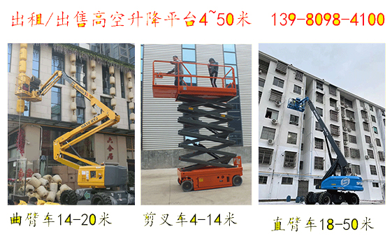 今天成都力成液壓機(jī)械有限公司就為你介紹出租設(shè)備種類: 全自行剪叉升降機(jī):升高12米,自身重量3噸,主要針對(duì)移動(dòng)、升降頻繁的用戶使用。 曲臂直臂高空車:...